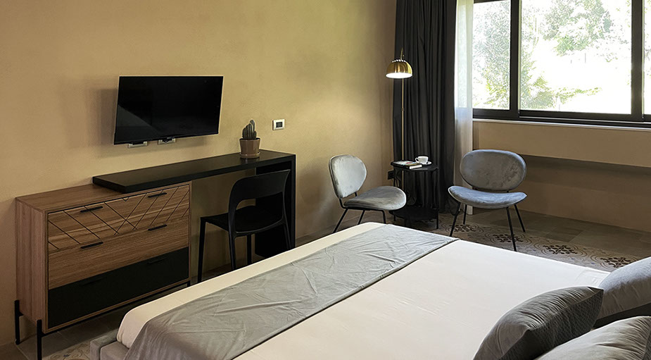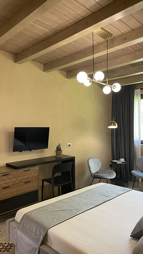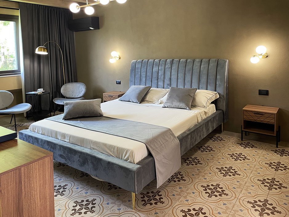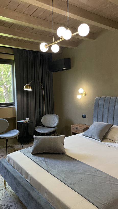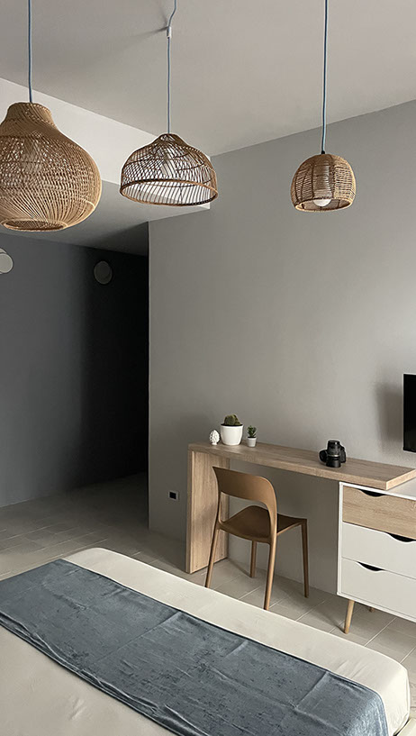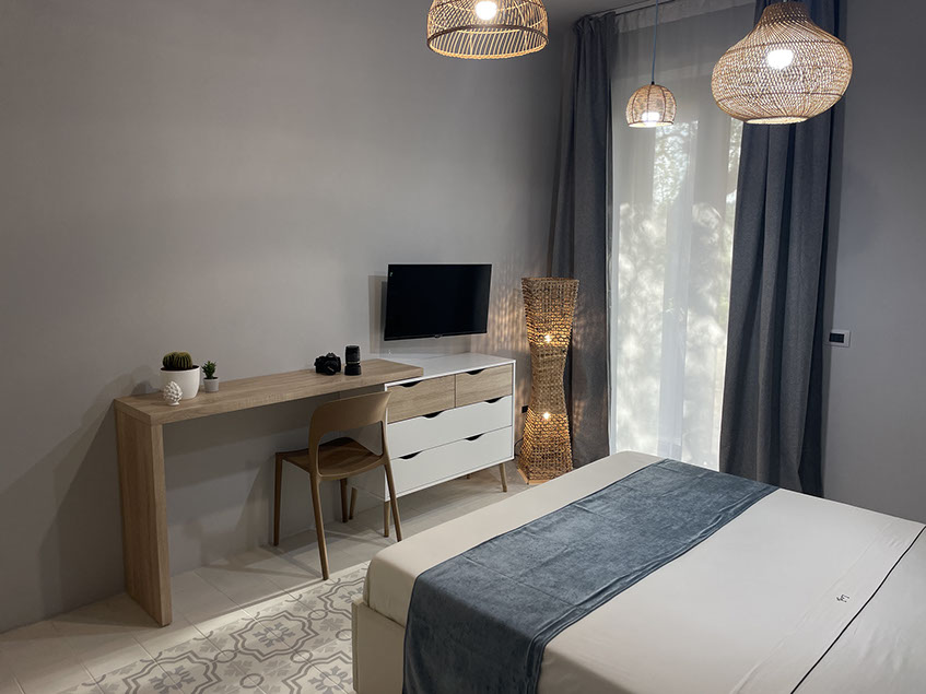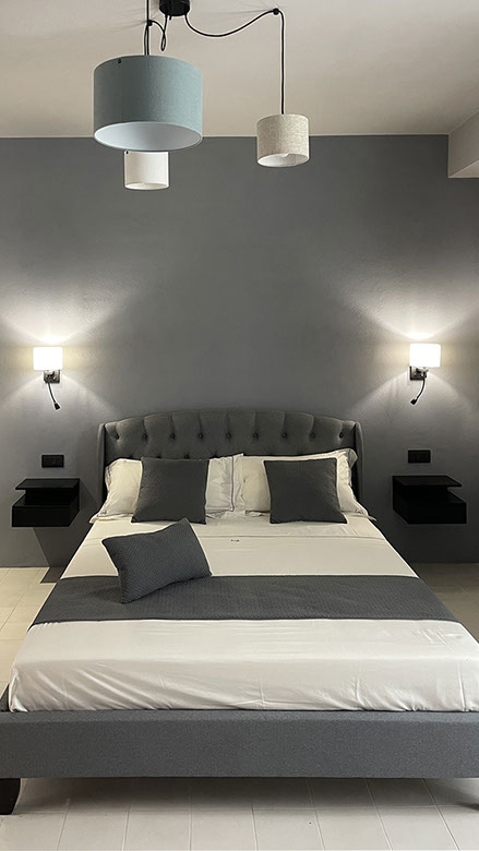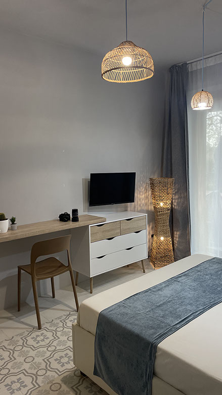 Ogni stanza è arredata con gusto, combinando elementi di design moderno e tocchi di calore tipici della tradizione siciliana.