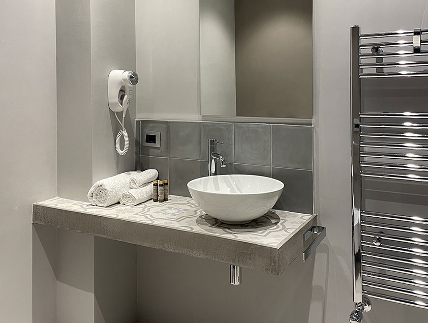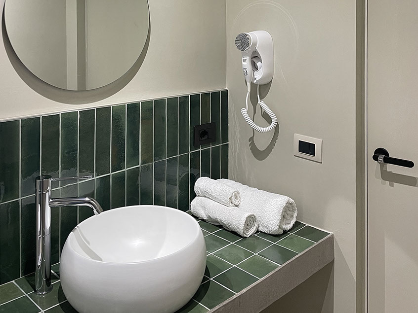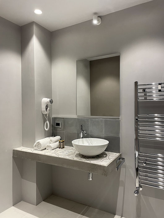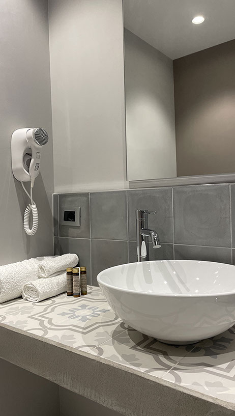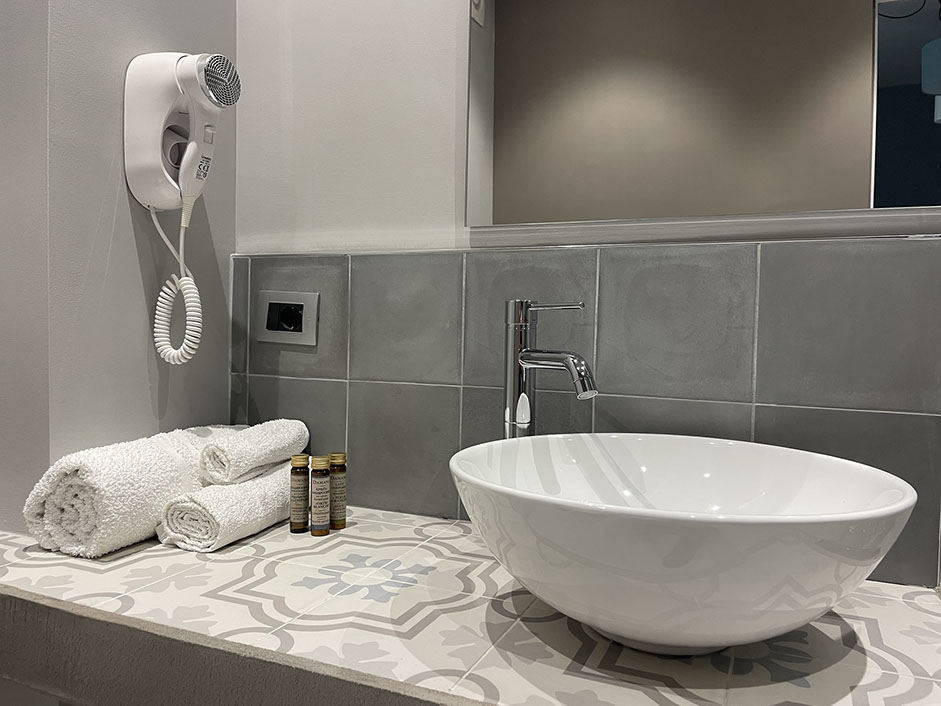 Anche questa camera come tutte altre, è dotata di un delizio bagno completo con ampio box doccia, e dotato di termoarredo, asciugacapelli, ed ogni altro comfort utile a rendere piacevolmente indimenticabile il tuo soggiorno.