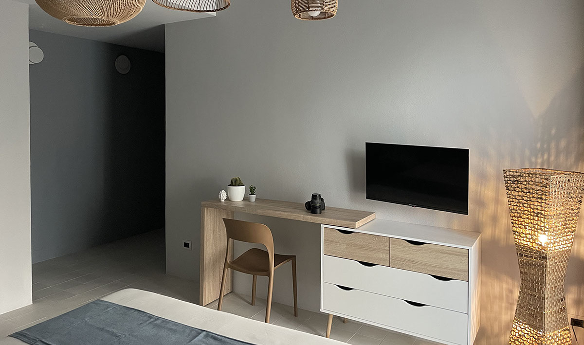 dotazioni principali di ciascuna camera (vedi anche scheda servizi) 2 posti in letto matrimoniale impianto di climatizzazione indipendente scrivania portavaligie pieghevoli area esterna di esclusiva pertinenza wi-fi gratuito smart TV cassaforte frigobar bagno completo con ampio box doccia asciugacapelli divieto di fumo nelle camere e spazi/aree comuni non si accettano animali domestici** non si accettano ospiti di età inferiore ai 14 anni compiuti**