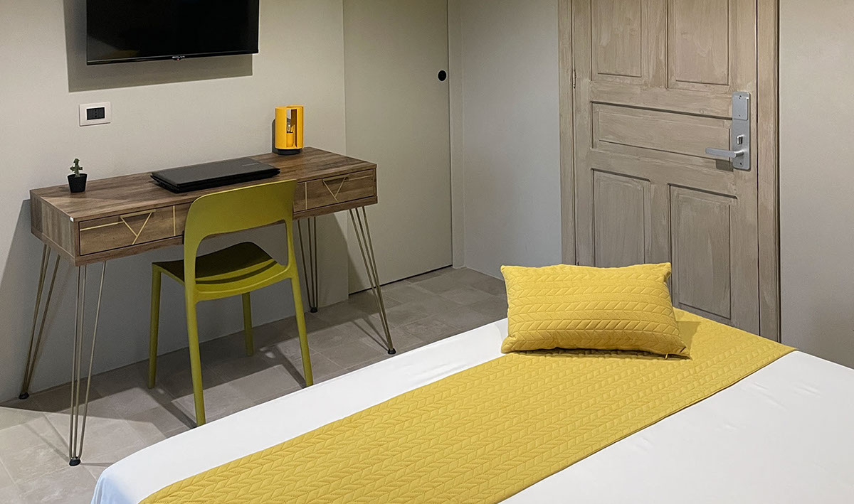 dotazioni principali di ciascuna camera (vedi anche scheda servizi) 2 posti in letto matrimoniale impianto di climatizzazione indipendente scrivania portavaligie pieghevoli area esterna di esclusiva pertinenza wi-fi gratuito smart TV cassaforte frigobar bagno completo con ampio box doccia asciugacapelli divieto di fumo nelle camere e spazi/aree comuni non si accettano animali domestici** non si accettano ospiti di età inferiore ai 14 anni compiuti**