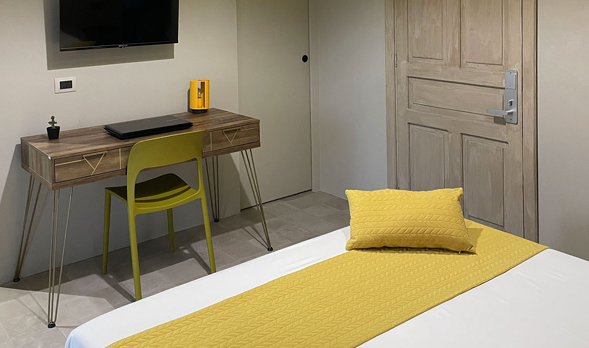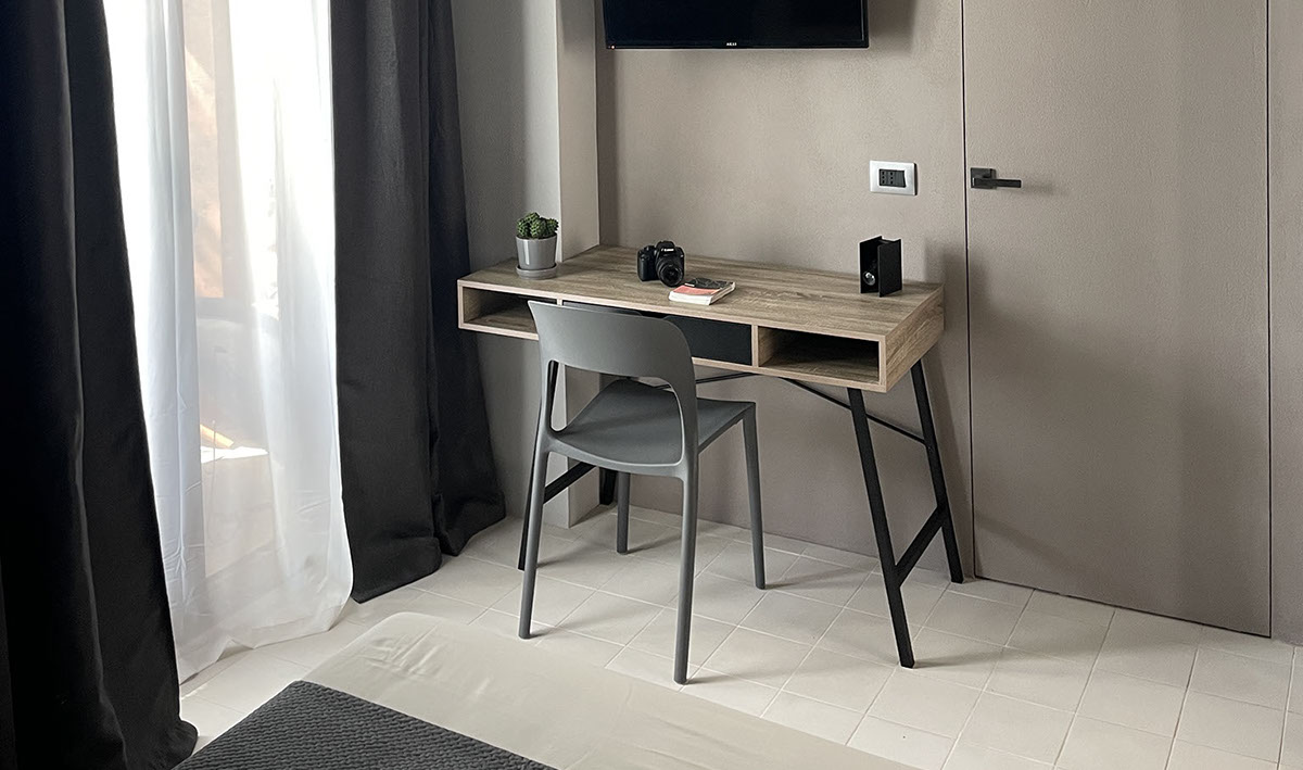 main features of each room (see also services sheet) 2 places in double bed independent air conditioning system desk foldable luggage racks external area of exclusive relevance* wi-fi free smart TV safe mini-bar full bathroom with large shower box hair dryer smoking is prohibited in rooms and common spaces/areas pets are not accepted** guests under the age of 14 are not accepted**