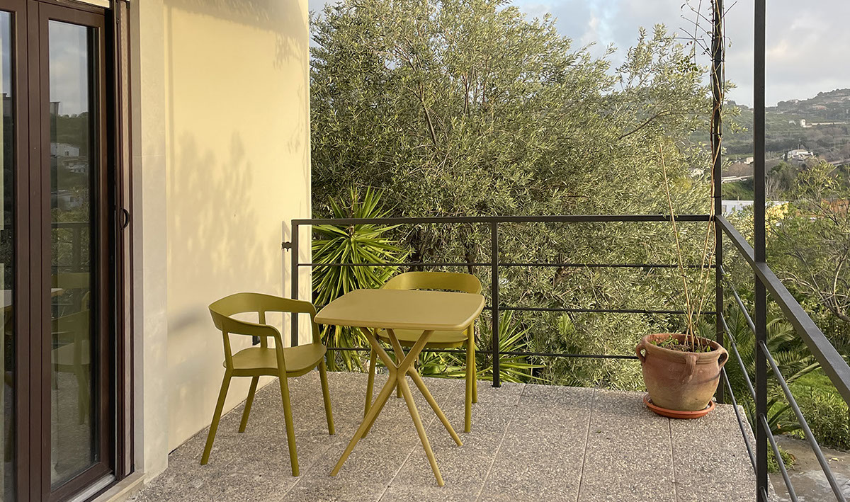 Dafne The room of la dimora delle Naiadi di Noto This romantic room is located on the first floor of the structure and is equipped with a comfortable double bed, has a private terrace of exclusive relevance, where you can relax and enjoy the view of the sparkling pool and the splendid surrounding countryside. The terrace is furnished with a table and chairs, ideal for enjoying an outdoor breakfast or an aperitif at sunset, and also two deck chairs perfect for sunbathing and enjoying the tranquility that la dimora delle Naiadi di Noto has to offer. This room, like all the others, is equipped with a delightful complete bathroom with a large shower, and equipped with a heated towel rail, hairdryer, and every other useful comfort to make your stay pleasantly unforgettable. click for the gallery and the complete sheet of Dafne...